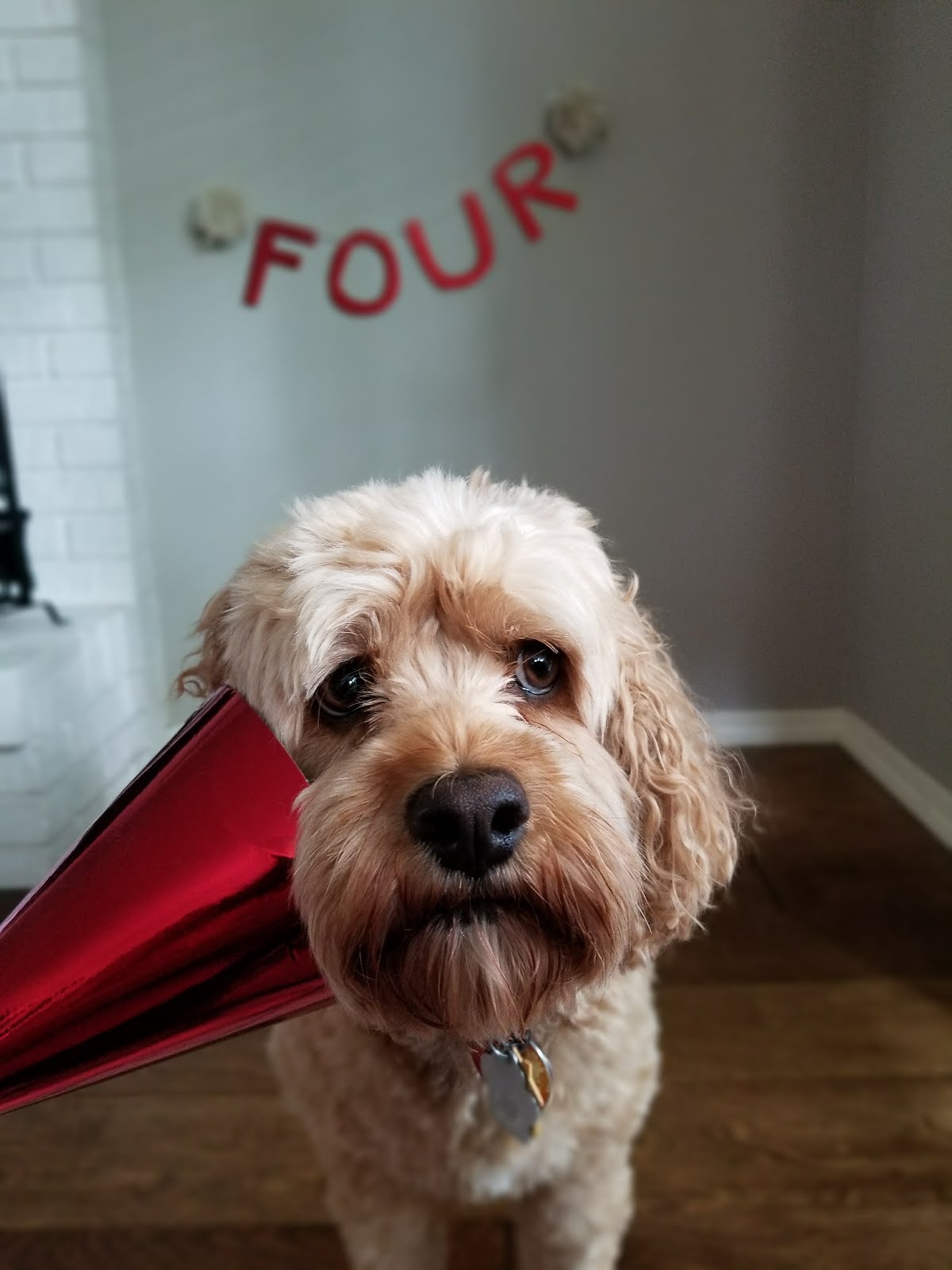 After getting back to Illinois, we celebrated Ruby's fourth birthday! She spent the day being spoiled with yummy people food treats, got to go on a nice long walk, and finished the day with a special pupcake! And, of course, her annual birthday photo. I just love this sweet girl so much. This is her "official" birthday photo, and a couple others from the day. :)